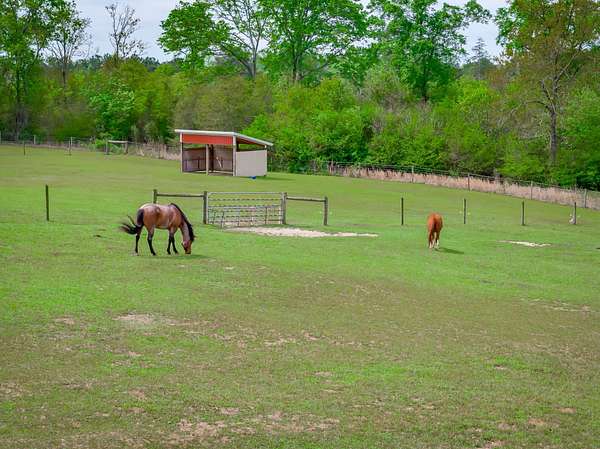 The pastures are fenced and cross-fenced into four sections, with water available in three of them. The entire property is fenced along or close to the property line.