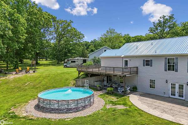 ?? Prime Hunting & Recreational Land: 184.6 Acres of Trails, Game, and Legacy in Keokuk, Iowa An outdoor enthusiast's dream; prime hunting and recreational land, offering a truly unparalleled opportunity for whitetail deer, turkey, and other game. The acreage features a well maintained, network of well-established trails, perfect for horseback riding, ATV exploration, or challenging hikes, and game management. Spend your days exploring, or relaxing by the pool and entertaining friends around the custom fire pit after a long day in the woods. The Ultimate Base Camp awaits, While the land is the focus, the estate offers luxurious, efficient amenities to serve as your ultimate base camp or lodge with a 3-bed, 3-bath open-concept home with a large, updated kitchen and expansive private decks. The finished walkout basement features a custom wet bar, living space, and a secret bonus room--perfect for sharing hunting stories or relaxing after a successful day. The home is remarkably efficient, powered by solar electricity and geothermal heating/cooling, and includes a back-up generator ensuring you never lose power. An oversized 4-car garage includes built-in indoor/outdoor dog kennels. The property also features a private 1-bed/1-bath apartment and a barn with horse stalls and an indoor arena. The property is steeped in history, home to the former DuPont blasting powder factory historically known as "Powdertown"--once the largest black powder manufacturer in the world.