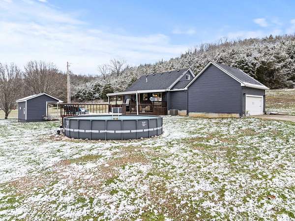 Discover a rare blend of serene country living and modern elegance on 8 sprawling acres in Jessamine County. From morning coffee on the wraparound front porch to evenings unwinding in the hot tub beneath the covered rear deck, this home offers peaceful moments at every turn. Inside, you'll find an open, bright, and airy custom-built residence featuring three spacious bedrooms and two and a half baths. An attached two car garage provides everyday convenience, while the oversized shop offers ample space for storage, hobbies or equipment. Three fenced acres are ready for your livestock, making this property ideal for anyone seeking room to roam. The land itself is truly special- backing to Hickman Creek with approximately 800 feet of creek frontage, delivering privacy, beauty, and unforgettable views. A newer pool and hot tub convey, creating your own private retreat at home. The motivated seller is offering up to 10,000 in buyer closing- credit with an acceptable offer. Property is being sold as-is, though inspections are welcomed. Opportunities like this are rare. Call today to schedule your private tour of this stunning countryside estate.