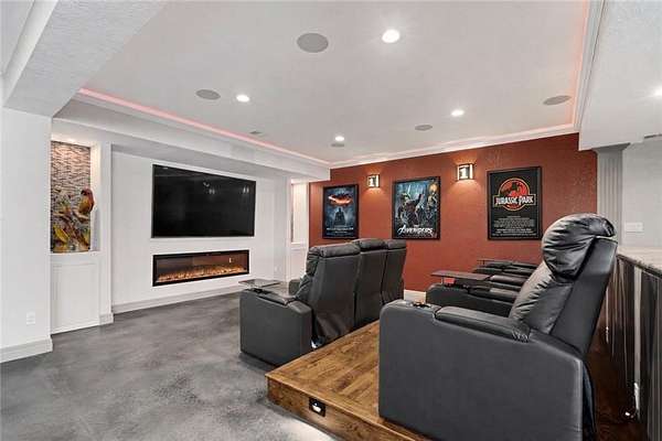 Welcome to your private retreat on 3 acres! This beautiful 1.5-story home features vaulted ceilings, 5 bedrooms, 4.5 bathrooms. The kitchen has been updated with fresh quartz countertops, and the primary suite opens to the four seasons room, perfect for relaxing year-round. The finished basement is set up for entertaining with a theater room and a bar, making it a great space for gatherings, or movie nights. Step outside to enjoy your own backyard oasis featuring a large heated swimming pool and hot tub, all surrounded by the privacy of your 3-acre lot. A 3-car garage completes the home with plenty of space for vehicles and storage. Space, privacy, and great entertaining areas. This one is a must see! The theater seating, basement TV, and downstairs barstools are negotiable and available for purchase.