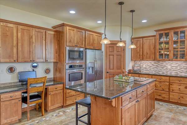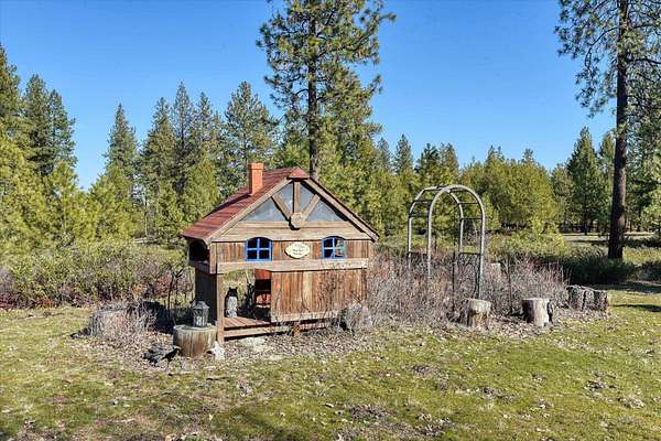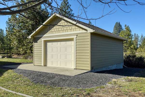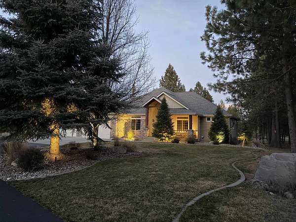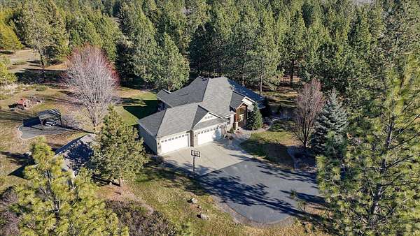 Absolutely amazing grounds on this original owner, semi-custom home built by Johnson Brothers. Enjoy the sunrise from the expansive back deck and sunsets from the covered front porch. Paved all the way to your front door! Very nice finishes including alder cabinets & slab granite counters throughout, solid wood doors with hemlock trim, and wood-wrapped windows. Main floor living w/ the perfect layout: Primary suite on one end, an additional bedroom w/ en-suite near the garage, plus a spacious office filled w/ abundant natural light. Expansive kitchen with giant island, bar seating, and eat-in kitchen. Great room w/ vaulted ceilings & views all the way to Mt. Spokane! Something for everyone in the finished daylight basement: 2 egress bedrooms; full bathroom; theater room with surround sound; full-size wet bar; billiards area w/ Brunswick pool table, card table, and darts. Over-sized 4 car garage plus an 18X24 detached workshop, dual gas furnaces; Roof-2025, Furnace-2021, A/C-2022, Gas H20-2023, softener-2024.