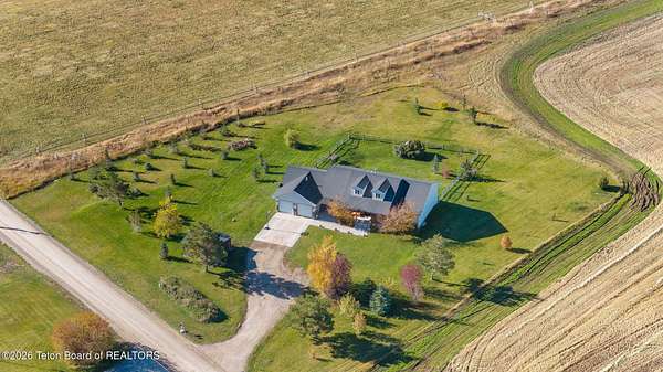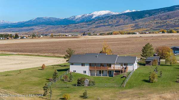 Est $10,783/moThis great farm house situated on 40 acres is a rare offering. It has five bedrooms, 3 1/2 baths, that have elevated views of the Big Hole mountain range. The home boasts beautiful hickory wood floors, hickory cabinets with stone and granite countertops. The entire property has pressurized water rights from Darby Irrigation District. The property currently has approximately 35 acres that is being farmed, allowing it be taxed agriculturally. It is located 2 1/2 miles southeast of Driggs on a well maintained road.