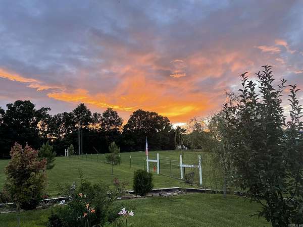 TAKING BACKUP OFFERS If you've ever dreamed of a simpler life - where the sunrise greets you with birdsong, the sunset melts behind the mountains, and your animals graze peacefully in your own backyard - welcome home. Tucked down a quiet dirt road just outside the friendly town of Marshall, this hilltop homestead blends modern farmhouse style with cottagecore charm, all set against breathtaking Ozark Mountain views. With fenced and cross-fenced pastures ready for horses, goats, or cattle, and open skies stretching in every direction, you can sip coffee on the spacious front porch, care for your animals with ease, and stargaze in quiet comfort. The beautifully landscaped yard features mature trees, flowering shrubs, and raised garden beds, complemented by a gravel driveway with ample parking. Two storage buildings and a pole barn with tack room provide plenty of space to safely store mountain bikes, kayaks, tools, and outdoor gear - perfect for exploring the rugged Ozark terrain. This is a property that feels like a page out of a storybook.