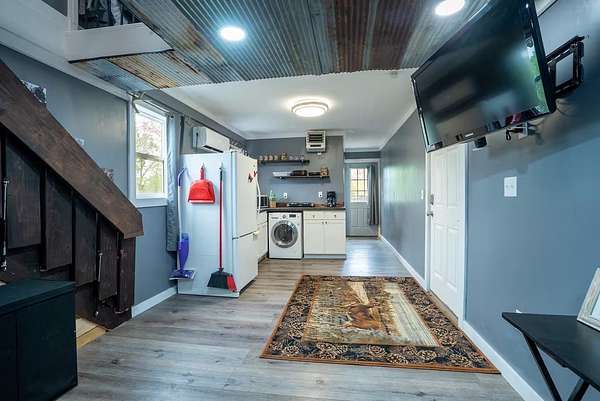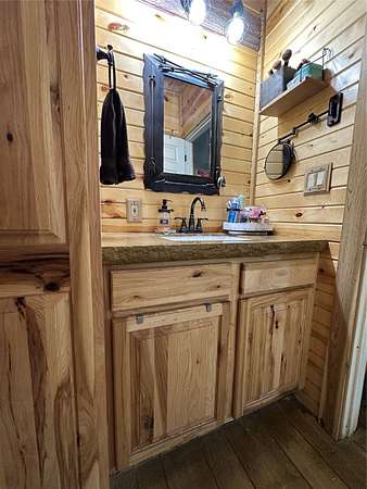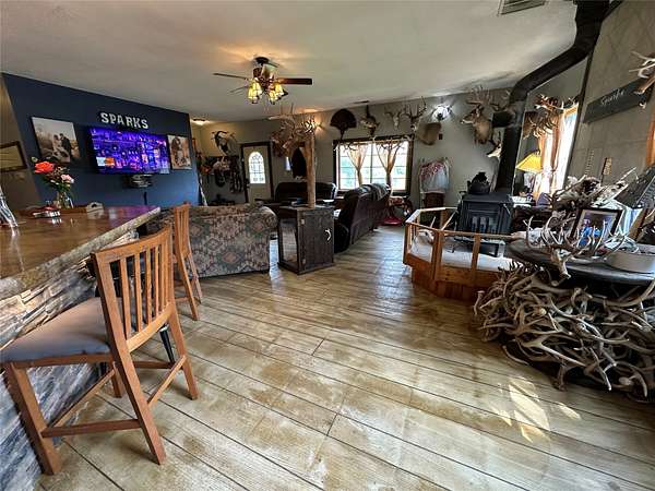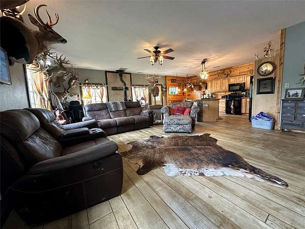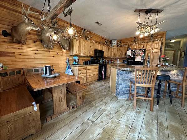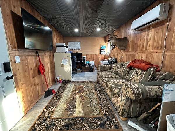 Welcome to this peaceful 10-acre retreat at the end of a dead-end lane in southern Madison County. This 2 bed/1 bath log veneer home offers an open-concept layout with the kitchen overlooking the dining and living areas. The kitchen is outfitted with beautiful hickory cabinets and concrete countertops, offering both charm and function. The home has central air, a furnace, and a cozy wood stove. Step outside to a large patio and a second concrete slab-currently used for a hammock but originally poured with a hot tub in mind. The property also features a 60'x40' shop with concrete floors and its own separate driveway. Inside the shop is a nearly 600 sq ft fully functioning Airbnb unit that sleeps five and includes its own bathroom. An additional office adjacent to the Airbnb could easily be converted into extra guest space. Outdoors, enjoy the peace of country life with a variety of fruit trees (apple, pear, and peach), a clover food plot, and included tower blind and treestand. The hunting opportunities are exceptional, with over 3,000 acres of public hunting within five minutes. Horse enthusiasts will appreciate the brand-new 80'x120' outdoor riding arena-installed just two months ago and negotiable with the sale. High-speed fiber internet is already installed, making working from home easy and reliable. This is a rare opportunity to own a private, well-rounded property with income potential, modern conveniences, and room to roam.