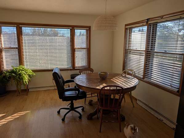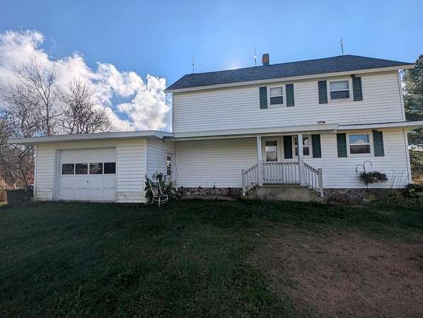 A solid traditional 2 story farmhouse with private 35.48 acres (mol), 5-6 acres cropland, some woods that include pines, maple, tamarack and some marshy areas. Great hunting land off a main highway and close to Medford, Wausau, and Merrill. The house has an open concept kitchen and dinette, large living room, 3 nice size bedrooms, 1.5 bath, full unfinished basement. Attached 1+ car garage that is insulated and finished plus a pole shed/barn, 37 'x 77' has a tin roof, 4 parking stalls, a workshop area and a second floor. Shed was previously an antique shop and has electricity that is disconnected. Extras include stove, refrigerator, washer, dryer. Lots of natural light, original hardwood floors on upper level, kitchen pantry and a built-in bookcase. Updates and replacements include vinyl siding - 2012, gas furnace - 2015, windows in living room and roof shingles were replaced - 2024, water heater - 2025, 100 Amp service. Older conventional septic and drilled well.