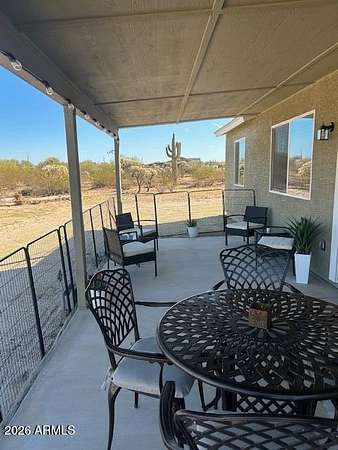This home features wood-look vinyl flooring throughout, granite countertops and tile surrounds in the bathrooms, and a kitchen complete with stainless steel appliances and a pantry. The spacious dining and living rooms offer plenty of room for entertaining and everyday living. Sitting on 2 acres, the property showcases beautiful native desert vegetation with a lovely variety of cacti and trees -- plenty of room for horses and outdoor activities. The back patio includes fencing, perfect for small children or pets. Additional highlights include a shared well among five homes, a recently installed generator transfer switch for easy generator hookup during power outages, and the added privacy and security of a private street with no through traffic.