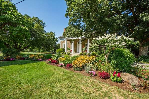 This beautiful 3, possible 4-bedroom, 2-bathroom Cobblestone Greek Revival sits on a sprawling 19.06-acre lot, offering a perfect blend of classic elegance and natural serenity. Step inside and be greeted by the warmth of hardwood floors that flow seamlessly throughout the 2,606-square-foot home. Throughout the years, the sellers were careful to maintain the original charming character of the home during its various updates. The heart of the home is the stunning kitchen, featuring butcher block countertops and a cozy wood-burning fireplace perfect for intimate gatherings on a chilly evening. Outside, the property is a true masterpiece of design. The meticulously maintained grounds boast exquisite gardens, mature trees and stone landscaping features creating a vibrant and welcoming curb appeal. A 24x72-inch pole barn on the massive 20-acre lot offers endless possibilities for hobbies or storage. Relax and entertain on the huge slate patio, surrounded by the beauty of nature. The front porch, with its magnificent wood pillars, adds a touch of timeless sophistication, inviting you to sit and enjoy the peaceful surroundings. This centrally located property between Canandaigua, Keuka, and Seneca lakes is more than just a home; is a private retreat waiting for you. This parcel is to be subdivided, seller willing to subdivide into either 5 acres (R1645966), 19.06 acres or sell the parcel whole(R1645983). Some photos are digitally staged. Taxes TBD.