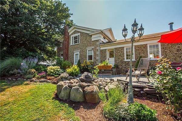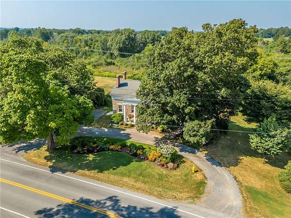 This beautiful 3, possible 4-bedroom, 2-bathroom Cobblestone Greek Revival sits on a 5 acre lot (to be subdivided), offering a perfect blend of classic elegance and natural serenity. Step inside and be greeted by the warmth of hardwood floors that flow seamlessly throughout the 2,606-square-foot home. Throughout the years, the sellers were careful to maintain the original charming character of the home during its various updates. The heart of the home is the stunning kitchen, featuring butcher block countertops and a cozy wood-burning fireplace perfect for intimate gatherings on a chilly evening. Outside, the property is a true masterpiece of design. The meticulously maintained grounds boast exquisite gardens, mature trees and stone landscaping features creating a vibrant and welcoming curb appeal. Relax and entertain on the huge slate patio, surrounded by the beauty of nature. The front porch, with its magnificent wood pillars, adds a touch of timeless sophistication, inviting you to sit and enjoy the peaceful surroundings. This centrally located property between Canandaigua, Keuka, and Seneca lakes is more than just a home; is a private retreat waiting for you. Some photos are digitally staged. This parcel is to be subdivided, seller willing to subdivide into either 5 acres, 19.06 acres (R1631331) or sell the parcel whole (R1645983). Taxes TBD.