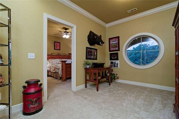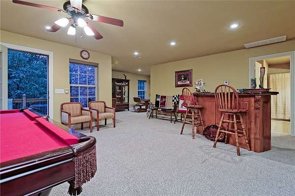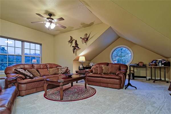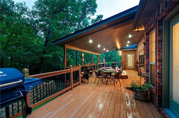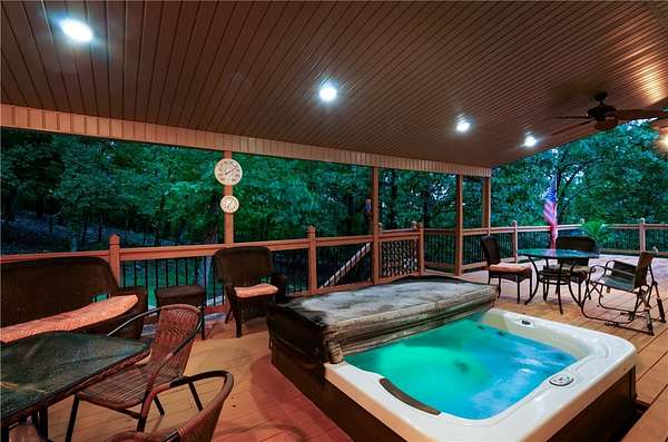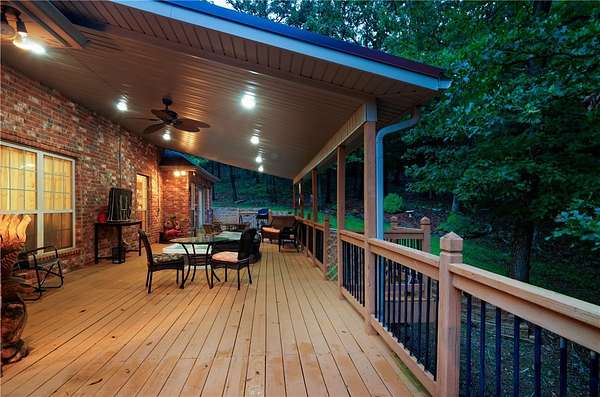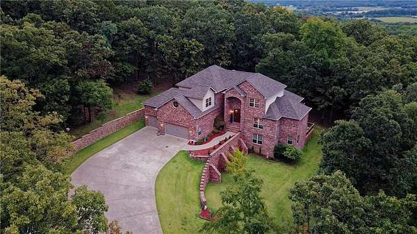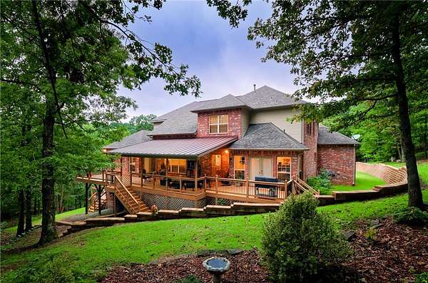 Enjoy your own beautiful East Fayetteville estate surrounded by wooded privacy just minutes from school and shopping. This well-constructed home offers a wide open floor plan with a spacious kitchen and 5 bedrooms, each with a walk-in closet and full baths. The main level has high ceilings, office space, a minibar, and a walkout master bedroom with a dreamy 12' x 18' closet! Upstairs features 3 bedrooms, a large theater/bonus room, and a large landing space overlooking the downstairs formal living room. Downstairs has a large game room with a private walk-out deck and a 5th bed and bath, perfect for an in-laws suite. Entertain or relax out on the large covered back deck with a sunken hot tub while taking in expansive Ozark views. Plenty of storage throughout, along with attic and basement access and a 3-car garage. Beautifully landscaped with plenty of parking. Everything you would expect in a luxury home, without seeing rooftops in every direction.