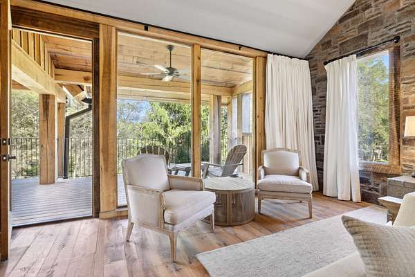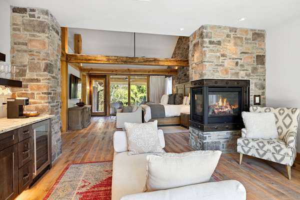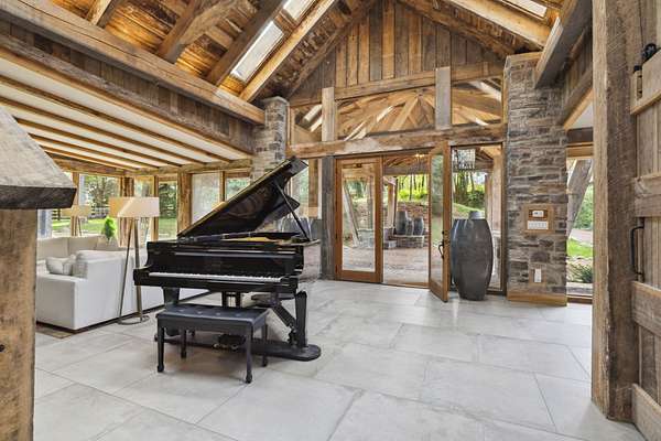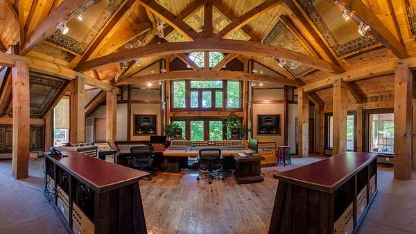 DARK HORSE STUDIO: Built in 1998, and is world-renowned as a destination for A-list recording artists from all around the world. Like The Manor Estate, this approximately 8900 square-foot building is a combination of heavy post and beam construction but with a more rustic feel, creating a unique and immersive environment for artists. For decades, this space has fostered creativity and focus, allowing artists to escape the hustle and bustle of everyday life and find inspiration in a serene, nature-filled setting. This unique building consists of public areas, studios, and two separate sleeping quarters, along with multiple porches and patios.