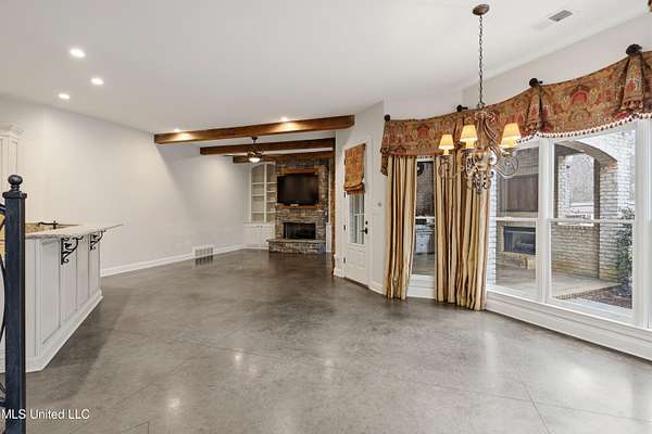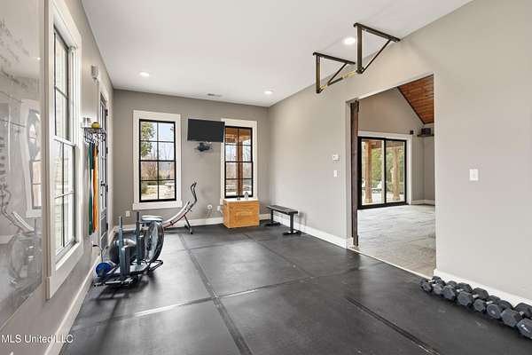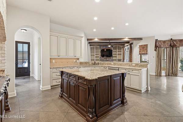 One-of-a-kind estate situated on 5 private acres in the highly sought-after Lewisburg School District. This exceptional 6,500 sq ft property offers 5 bedrooms, 4 full baths, and 2 half baths with an unmatched combination of luxury, privacy, and resort-style amenities. Designed for both elegant entertaining and comfortable living, the home includes a formal living room with wine closet, formal dining room, and a gourmet kitchen open to the breakfast room and inviting hearth room. The kitchen is equipped with two pantries plus a butler's pantry, providing abundant storage and prep space. Additional interior highlights include a state-of-the-art theater room with theater seating included and a spacious billiards room with pool table included. The expansive primary suite serves as a private retreat, featuring a dedicated office, covered balcony, in-suite sauna, and hidden safe room. Step outside to your own private resort featuring a gunite pool, outdoor kitchen, 1,200 square foot pool house complete with kitchen, bedroom, full bath, and dedicated weight room (gym equipment included), lighted private tennis courts, fire pit area, and storage shed. Sellers are offering a $50,000 decorating allowance, providing an opportunity to customize and personalize this incredible home to your own style. This is a truly one-of-a-kind property offering space, recreation, and refined living -- all in a prime Olive Branch location. Schedule your private showing today!