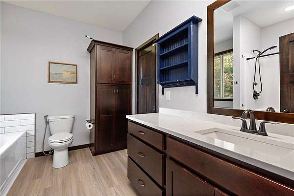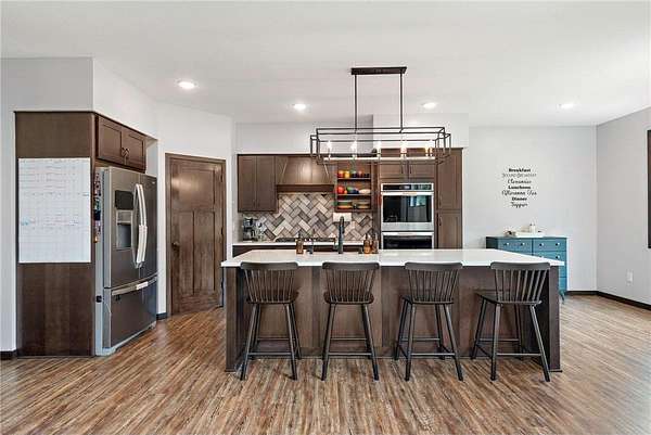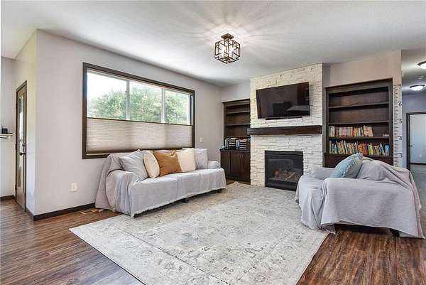 Welcome home to your private retreat in Big Lake! This beautiful 5-bedroom, 3-bathroom home sits on 2.5 acres surrounded by mature evergreens and abundant wildlife. Step inside to an open floor plan filled with natural woodwork and a cozy fireplace, creating a warm and inviting atmosphere. The main-level primary suite offers comfort and convenience, while the finished basement, with a roughed-in wet bar for future use, provides endless opportunities for entertaining. Enjoy the outdoors from the spacious deck overlooking a large, fenced-in backyard, perfect for gatherings, recreation, or even bow hunting in your own wooded paradise. The heated and insulated garage (with A/C) is ideal for hobbies, projects, or extra storage. This property combines privacy, functionality, and nature, all just minutes from town. Catch this opportunity to make it yours!