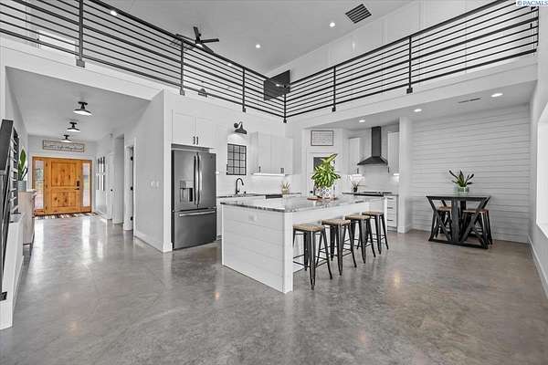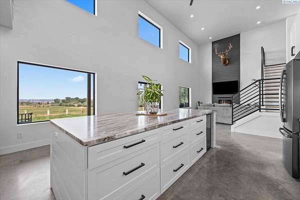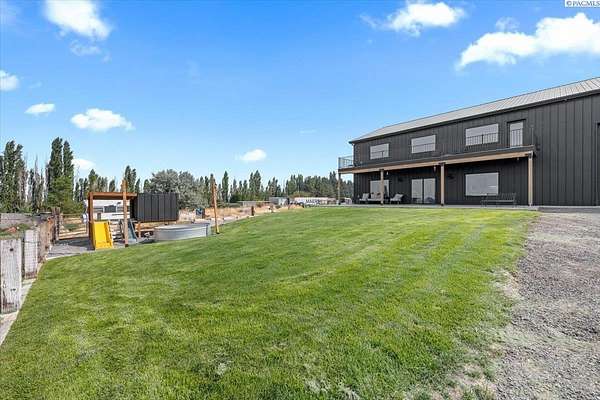MLS# 287101 Welcome to this one of a kind custom 2020 built Barndominium, situated on 9 acres in a Country setting. This home has views of the Mountains and the Columbia River right out it's back yard and even better off of its upper 328 SQ FT elevated upper Balcony. Walking into the home you will see all the love and attention to detail that was put into the 3178 SQ FT of living space. Epoxy floors will greet you right at the entrance of this open Floor plan. With plenty of natural light coming from the large windows and beautiful color choices you can see things have been carefully chosen to make this home a one of a kind. White cabinets thru-out and Full white Tile backsplash in the Kitchen as well as a large kitchen island. Master is situated on the main level along with one other bedroom, laundry room and the main bathroom. As you head upstairs you will see another laundry room, 2 bedrooms, bathroom and a nice open space that can be used as an extra living room. As you take a walk back downstairs you will find the massive 1884 SQ FT garage/shop with a few Tandem 14-foot garage doors, drinking fountain and even a Basketball hoop to be able to play inside. This large area can store an RV, boat and even host parties inside of it. But wait.... there is more. There is a 528 SQ FT exercise room that is included into the total square footage of the home with a partially finished bathroom and a separate 444 SQ Ft partially completed area that could be used as an in laws area or apartment in the upper level. Outside has a Chicken coop with 6 chickens, kids playhouse and plenty of space for your Livestock. Property is Irrigated and ready for you.There are so many more amazing things about this property that you will need to get inside to see it all. Call your agent today to get you in this one of a kind home!!