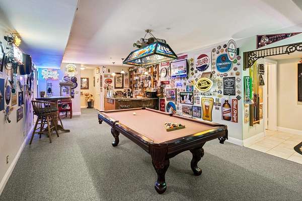 - 2 Staircases, Bar, Beamed Ceilings, Built-Ins, Ceiling Fan, High Ceilings (9 Feet+), Kitchen Island, Recessed Lighting, Stone Counters