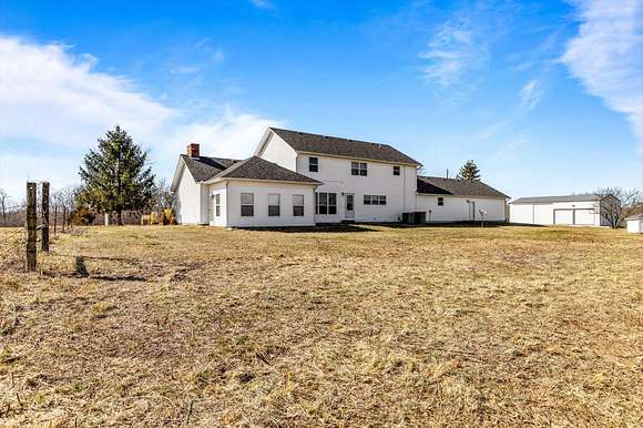 Introducing your extraordinary colonial-style dream home, perfectly nestled on 5 picturesque acres where luxury seamlessly merges with tranquil country living! This stunning residence boasts 5 spacious bedrooms, 3 full bathrooms, and an impressive 3,692 square feet of exquisite living space.As you step through the front door, you'll be welcomed by gleaming hardwood floors that radiate warmth and sophistication. Abundant large windows flood the interiors with natural light, enhancing the fresh, inviting ambiance throughout the home. Enter the living room, where elegant French doors invite you into an updated galley-style kitchen, a culinary haven equipped with state-of-the-art stainless-steel appliances, generous countertop space, and ample cabinetry for all your storage needs. Adjacent to the kitchen, you'll find a grand dining room, ideal for hosting unforgettable gatherings and celebrations. The spacious family room offers the perfect balance of relaxation and entertainment, or you may choose to unwind in the serene sunroom that opens up to your expansive backyard.Retreat to the primary bedroom located on the main floor, an oasis of comfort featuring a private bathroom and a luxurious walk-in closet. Next door is another sizable bedroom, also complete with its own bathroom for added convenience. Venture upstairs to discover your personal sanctuary, comprising three generous bedrooms, each with walk-in closets, and an additional full bathroom. This level also features a cozy sitting room and a charming balcony, where you can enjoy the scenic views from the front of the house. For those prioritizing safety, the 2-car garage includes a storm shelter for peace of mind. Step outside to find a fully insulated workshop, recently spray-foamed, complete with a concrete floor and electricity--perfect for pursuing your hobbies or accommodating extra storage. The beautifully landscaped yard, highlighted by a stunning central fountain, elevates the charm of this property,