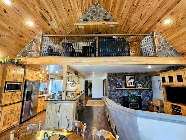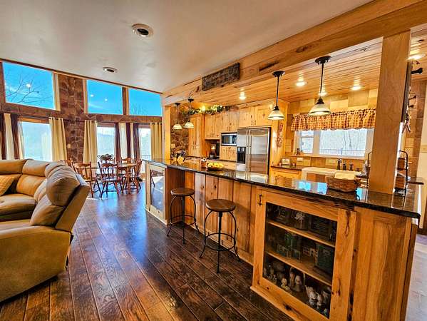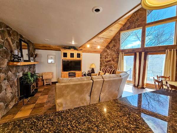 WOODED PRIVACY and A VIEW! LOCATED ON GEORGES CREEK RD IN GALLIPOLIS, OHIO, THIS A-FRAME BRICK HOME IS SITUATED ON NEARLY 6 SCENIC ACRES THAT OFFER BREATHTAKING VIEWS THROUGH SOARING WINDOWS THAT CAPTURE THE BEAUTY OF EVERY SEASON—SPRING, SUMMER, FALL, AND WINTER. THE HOME FEATURES 4 BEDROOMS AND 4 FULL BATHS, INCLUDING A SPACIOUS PRIMARY SUITE, AND A BEAUTIFUL CUSTOM KITCHEN DESIGNED FOR BOTH FUNCTION AND STYLE. THE WELL-THOUGHT-OUT FLOOR PLAN ALLOWS FOR TOTAL PRIMARY LIVING SPACES ALL ON THE MAIN LEVEL, COMPLEMENTED BY TWO FIREPLACES THAT ADD WARMTH AND CHARACTER THROUGHOUT IN ADDITION TO SPACIOUS CLOSETS AND TONS OF ADDITIONAL STORAGE SPACE. THE WALKOUT BASEMENT IS APPROXIMATELY 50% FINISHED AND PROVIDES FLEXIBLE OPTIONS—IDEAL FOR GUEST QUARTERS, A PRIVATE IN-LAW SUITE, ENTERTAINMENT SPACE, OR HOME OFFICE SETUP - IT EVEN HAS A SPACE FOR ADDITIONAL BATH/LAUNDRY IF DESIRED AND A KITCHEN SPACE! OUTDOOR AMENITIES INCLUDE AN IN-GROUND POOL WITH NICE DECKING FOR OUTDOOR ENTERTAINING AND PERFECT FOR SUMMER ENJOYMENT, A POND THAT ADDS TO THE SERENE SETTING, AND AN OLDER BARN SUITED FOR SMALL ANIMALS OR HOBBY FARMING. ADDITIONAL IMPROVEMENTS INCLUDE A 24X32 THREE-BAY GARAGE, A TWO-CAR CARPORT, AND ABUNDANT STORAGE THROUGHOUT THE HOME. A RARE OPPORTUNITY OFFERING SPACE, VERSATILITY, AND SCENIC CHARM—TRULY A MUST SEE!
