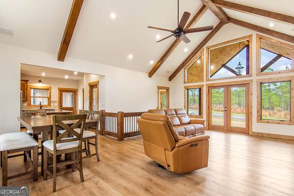 - Beamed Ceilings, Double Vanity, High Ceilings, In-Law Floorplan, Master On Main Level, Vaulted Ceiling(s), Walk-In Closet(s)