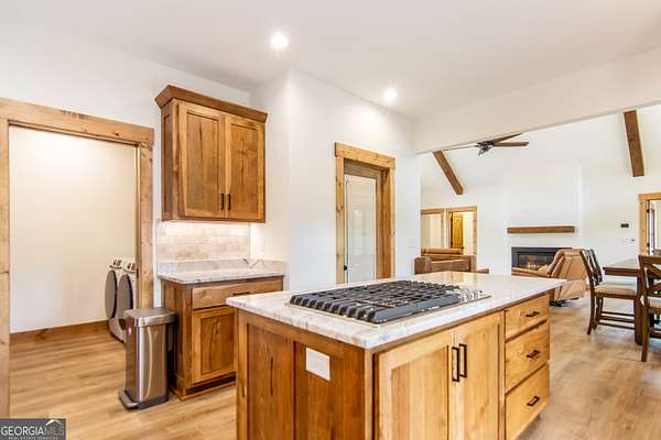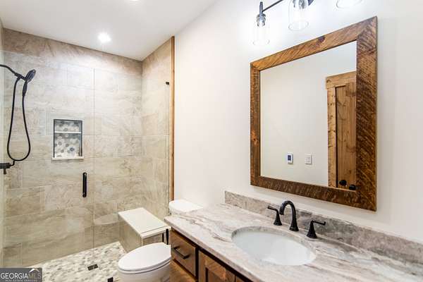 Welcome to 2468 Twisted Oak - a custom-built, beautifully designed ranch with a finished basement offering 4 bedrooms, an office/bonus room, 3 baths, and approximately 3,344 sq ft on 1.96 peaceful acres with over 257 feet of RUSHING Price Creek frontage. Every inch of this home was thoughtfully and custom finished with quality in mind. Enjoy rock walkways, a charming stone-step entry, luxury LP wood-grain siding, and an oversized 30' x 36' two-car garage with workshop space. The property includes a flat lower yard and a lower patio area perfect for a future hot tub-all enhanced by the soothing sound of the creek along the back property line. Inside, the main level showcases warm wood accents, durable LVP flooring, wood-beamed ceilings, a gas fireplace, and a huge covered porch ideal for relaxing, entertaining, and taking in the serene surroundings. The kitchen features wood cabinetry, quality appliances, a range in the island, touchless faucet, and a huge walk-in pantry with built-in shelving for exceptional storage and organization. A spacious dining area just off the kitchen provides the perfect gathering space for family meals, holidays, and entertaining guests. The primary suite includes a large walk-in closet, heated floors in both the bedroom and bathroom, a tile shower with dual showerheads, double vanities, and a Jacuzzi tub. Another bedroom, full bath, an office/bonus room, and the main-level laundry room with direct access to the garage complete this floor. The finished basement offers a second living area/game room, a bedroom with custom shelving and closets, a full tile bathroom with granite, and an unfinished room ideal for future expansion, storage, or use as a safe room. Additional upgrades include a whole-house water softener and filtration system, generator-ready wiring, premium HVAC system (higher quality than standard builder installs), on-demand water heater, fiber-optic internet availability, Starlink readiness, and a new roof. Located in the highly sought-after Vineyard at Yukon subdivision, this community offers all paved roads, a mountaintop pavilion, walking trails, water included in HOA dues, streamside gathering areas with firepits, underground utilities, fiber-optic internet availability, mountain scenery, and more! Future community amenities include a resort-style clubhouse and pool coming soon! Close proximity to wineries, hiking, Downtown Ellijay, Chateau Meichtry Winery, and local Ellijay favorites-this never-lived-in custom home combines craftsmanship, comfort, and an unbeatable mountain location. Perfect for a full-time residence, part-time getaway, or a high-demand vacation rental. Additional Community Benefits & Area Attractions: No school tax for residents 65 years and older. Nearby attractions include numerous apple orchards, scenic hiking trails, Springer Mountain (the start of the Appalachian Trail), local wineries, Amicalola Falls, Fort Mountain State Park, Brasstown Bald, trout streams, tubing, kayaking, sunflower patches, pumpkin patches, and so much more!