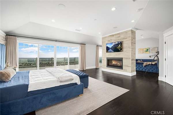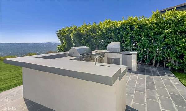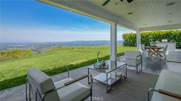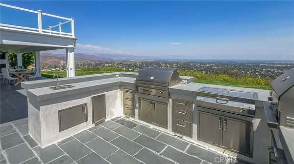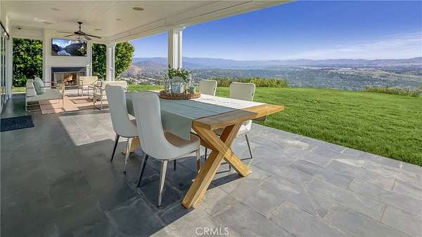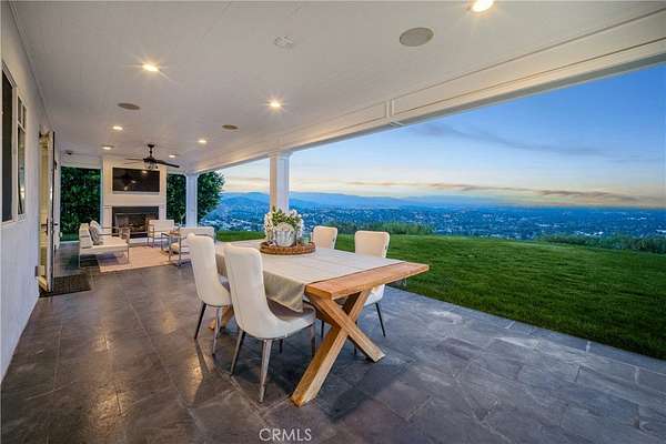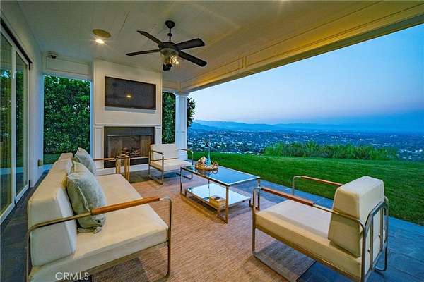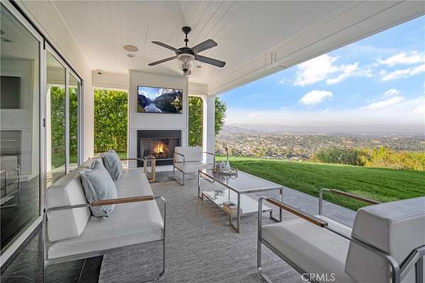 Step outside to an entertainer's paradise. The backyard features a covered patio with fireplace and an exceptional outdoor kitchen equipped with a sink, Lynx appliances, barbecue grill, charcoal grill, refrigerator, and pizza oven. Whether hosting gatherings or enjoying peaceful evenings, the panoramic views provide the perfect backdrop. See Matterport Tour