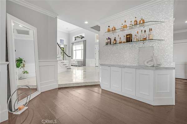 - Copper Plumbing Full, Dry Bar, Open Floorplan, Pantry, Recessed Lighting, Two Story Ceilings, Wainscoting