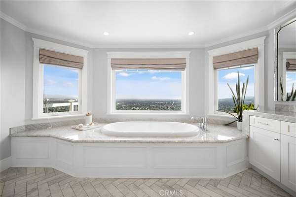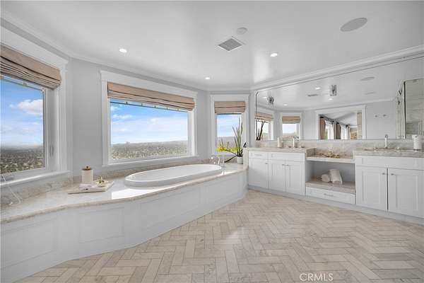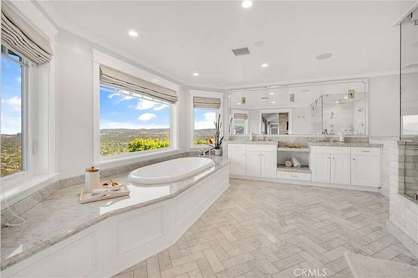 Welcome to this rare view estate in the highly coveted Valley Circle Estates, offering sweeping 180-degree vistas and exceptional attention to detail. Taken down to the studs and rebuilt in 2015, this luxury home blends timeless elegance with modern design. A grand double-story entry greets you with a winding staircase, soaring ceilings, and wide plank wood floors that flow throughout.