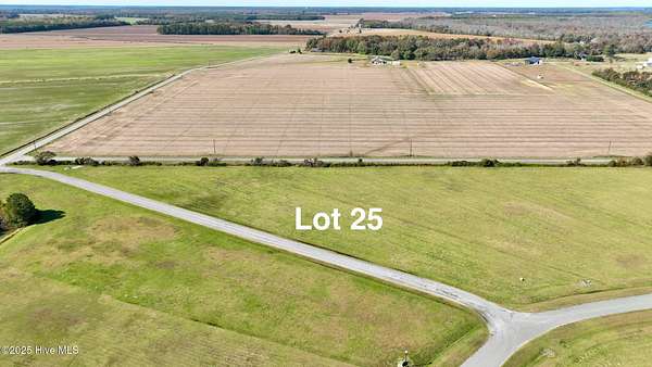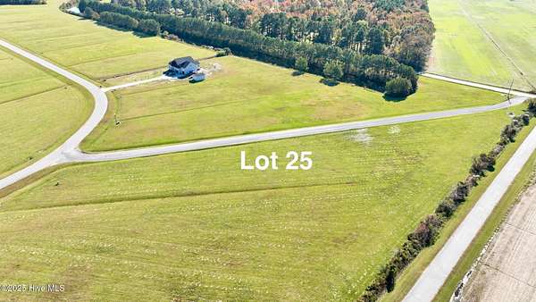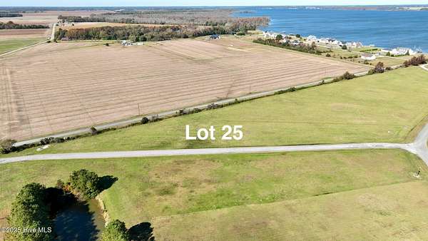 GPS or From Elizabeth City follow US-17 S, Left onto Old US Hwy 17 1.9 miles, Left onto Woodville Rd 6.2 miles, Left onto New Hope 7 miles, Left at the entrance of The Shores at Land's End, left on Blue Heron Blvd follow to the lot 25, sign on property