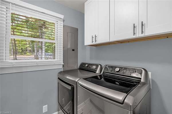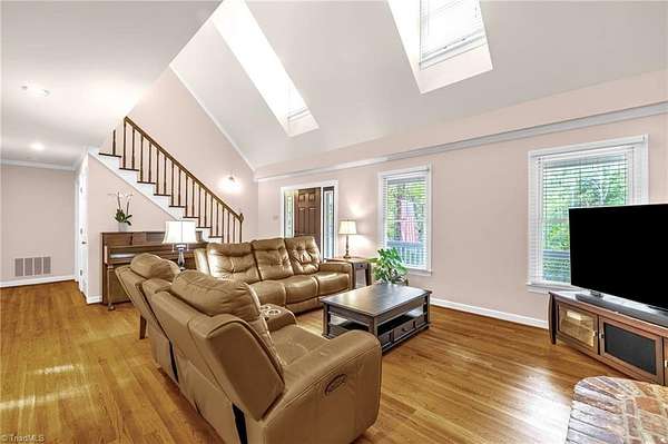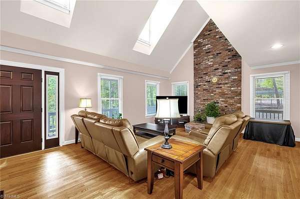 Come home to peace and privacy on this stunning wooded estate! Nestled among the trees, this 4.66-acre property offers a perfect blend of comfort, space, and rural charm! Features include: wraparound front porch, open concept kitchen with new granite countertops, amazing new laundry room, vaulted living room with skylights for abundant natural light, spacious primary bedroom with double vanity en suite bath including beautiful new tile flooring, large partially finished basement with office and theater room with Bose surround system included, chicken coop and detached metal carport, creek & endless possibilities for gardening, animals, or recreation! Whether you're looking for a private retreat, homestead, or just room to roam, this property delivers!