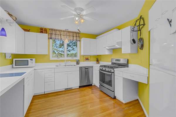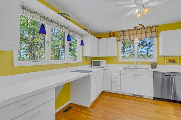 - Bedroom On Main Level, Cathedral Ceilings, Ceiling Fans, Dining Area, High Ceilings, Laminate Counters, Pantry, Walk In Closets