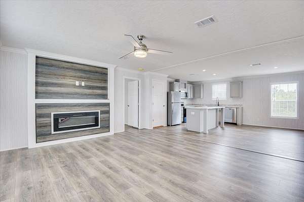 This home qualifies for NO MONEY DOWN LOAN USDA - New Price including 10k seller paid closing costs with preferred lender. Discover the freedom of country living with this brand-new, 2,200 sq ft manufactured home set on 5 unrestricted acres-perfect for your homestead dreams. Featuring 5 spacious bedrooms and 3 full bathrooms, this move-in ready home offers a flexible layout and modern finishes throughout. Step inside to a welcoming living room with an electric fireplace and a separate family room that opens to a beautifully designed kitchen. Enjoy stainless steel appliances-including stove, dishwasher, microwave, and refrigerator-plus a large breakfast bar, farmhouse sink, and walk-in pantry. The private owner's suite features a luxurious bathroom with his and her sinks, a garden tub, and a separate shower. Total electric, public water, and a septic tank ensure comfort and efficiency. NO restrictions-bring your farm animals, RV, or start a garden. There's room to grow, live off the land, and enjoy the outdoors. Owner/Agent.