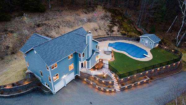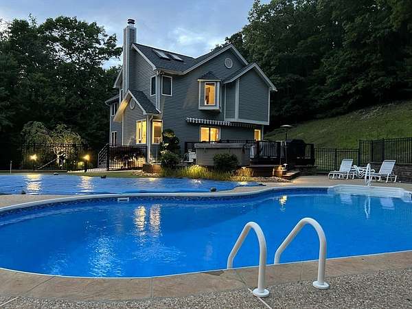 Welcome home to 247 Granite St, Leominster. The location of this open concept home offers city amenities and country living with many upscale and custom features you will love! From the moment you enter the home to a majestic custom-built metal staircase which is the central theme, to a dream kitchen, family room, dining, and living areas that have carpet and cherry wood flooring. An office is located on the first floor along with a laundry room with a second built-in stove, which is great for entertaining. Move outside to the inground pool, large changing house, private putting course, jacuzzi, a multi-level wooden deck with shaded dining. The property is beautifully landscaped and lit with elegant lighting. On the property is another building that supports a double carport, and a heated workspace. Property is equipped with a 22kW generator, new A/C unit (November 2025), pool liner replaced (July 2022). So much to see. No showings until Open House- Sunday, 4/19 12-2pm.