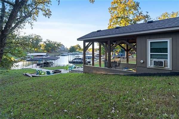 Lake getaway! This nearly half acre lot offers 60' of beautiful shoreline and everything you need for lakeside fun and relaxation. Enjoy the convenience of a recently built circle drive for easy access and plenty of parking. Spend evening around the concrete fire pit area, perfect for making memories with friends and family. The property includes a quality single well dock with a spacious swim platform- ideal for boating, fishing or swimming. Handy shelter shed provides extra storage for your toys and lake gear, with electric services already ran to both the shed and the dock. This lot is ready for your lake adventures- bring your boat, your s'mores, and start living the Lake Viking lifestyle!