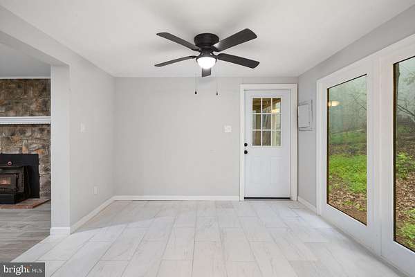 Rare Mountain Retreat in Warren County - Renovated 4-Bedroom Home on 3 Wooded Acres Don't miss this rare opportunity to own a beautifully renovated four-bedroom, two-bath home on three private, wooded acres near the top of the Blue Ridge Mountains. Located in the desirable Loch Linden community, this property offers stunning winter views across the Shenandoah Valley and access to a private lake with recreational amenities. The home has been thoughtfully updated throughout, blending modern convenience with rustic charm. Inside, you'll find a spacious living room with a cozy wood-burning stove and a fully remodeled kitchen featuring stainless steel appliances and a gas cooktop. Enjoy outdoor living with a large open deck at the rear of the home, plus a covered side deck for year-round relaxation. The layout includes two bedrooms on the main level, while the upper level boasts a generous primary suite with a walk-in closet and a private bath complete with both a soaking tub and a separate shower. The lower level offers a fourth bedroom, a laundry room with a stacked stainless steel washer/dryer. A large propane tank supplies fuel for the cooktop and two wall-mounted gas heaters-ideal for supplemental heating during power outages. Out back, a two-story workshop/shed is equipped with both electricity and heat, making it perfect for hobbies, storage, or additional workspace. As part of the Loch Linden Property Owners Association, residents enjoy access to a private reservoir with a white sand beach, boat ramp for small craft, a covered pavilion, picnic tables, and a fire pit for evening gatherings. This property offers seclusion while being just minutes from hiking trails, the G. R. Thompson Wildlife Management Area, local wineries, farmers markets, and dining options. Nearby Front Royal provides additional amenities including shops, events, and the state-of-the-art Warren Memorial Hospital. Please Note: Due to the grade of the terrain, the driveway should only be accessed from the right side.