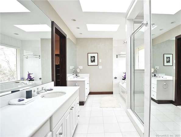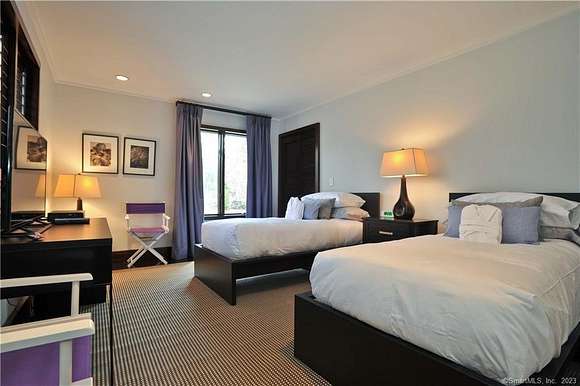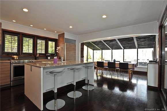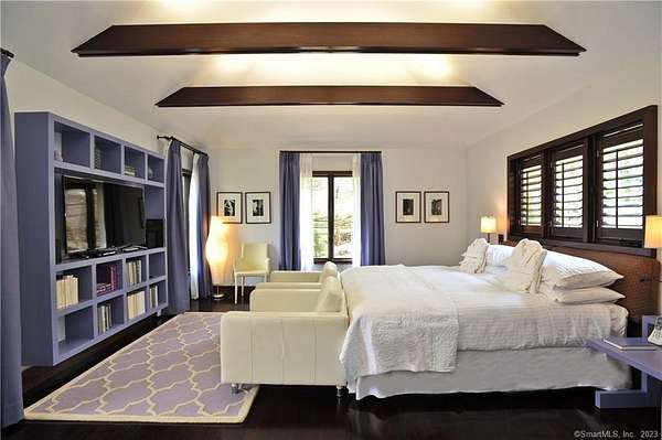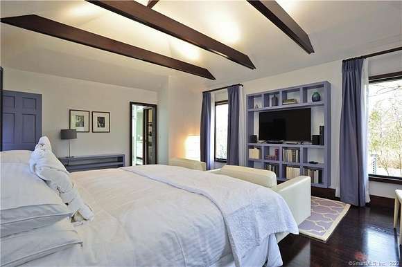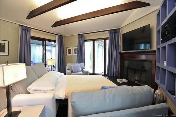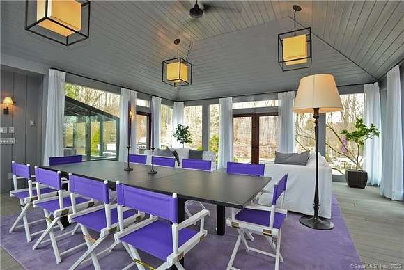 Est $10,342/moPristine St. Barth-Style bungalow with two-car garage. Single-level living surrounded by Roxbury's best historic estate neighborhood, farms and homes of artists, actors and writers. Magnificent open floor plan with 2-3 bedrooms on main floor, 2 fireplaces, new eat-in kitchen, vaulted living room, den and screened porch and another bedroom in finished lower level. Dine or relax on the flagstone terrace next to the heated gunite pool. Mature gardens with climbing roses, lavender and blue hydrangea.