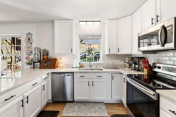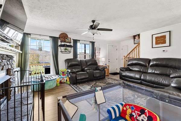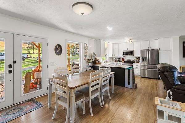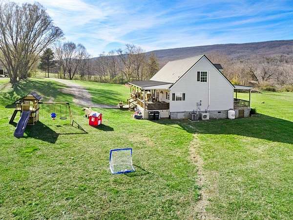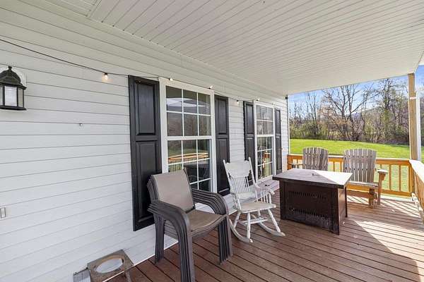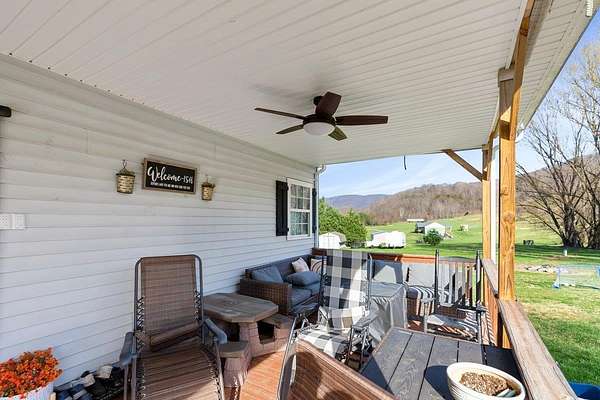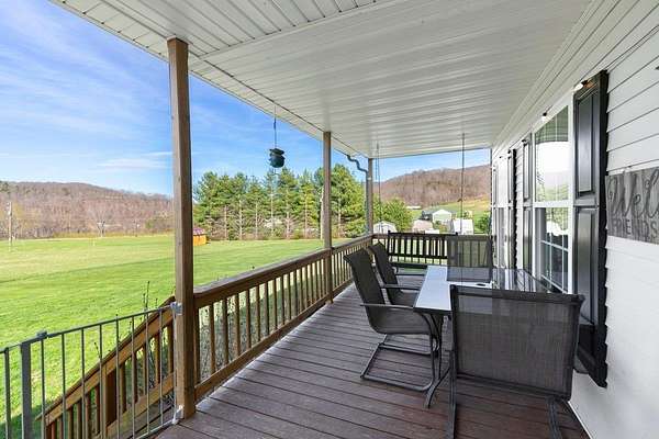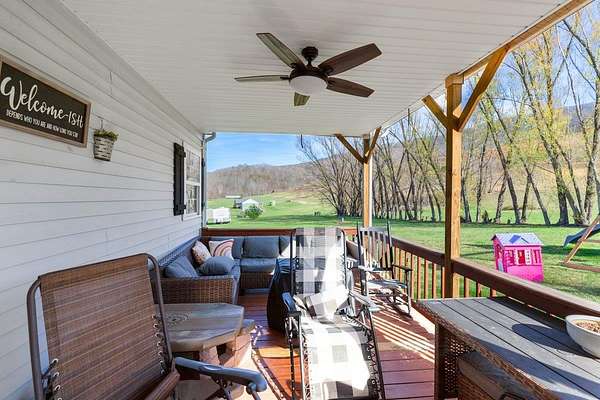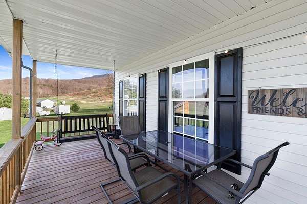 Peaceful Two-Story Home with Mountain Views Near the New River - Nestled on two acres in a quiet, serene setting, this beautiful two-story home offers the perfect blend of comfort, space, and natural surroundings - all just minutes from town. Enjoy lovely mountain views and close proximity to the New River & Wolf Creek. Inside, you'll find an inviting open-concept layout featuring a spacious living area with a stone gas fireplace, perfect for relaxing or entertaining. The custom kitchen is thoughtfully designed with updated appliances & ample space for gathering. This home offers 3 bedrooms and 2 full baths, including generously sized bedrooms throughout. Two large bedrooms are located upstairs, providing privacy & flexibility for family or guests. The primary suite features a spacious bath complete with a soaking tub and custom tile work - your own private retreat. Outside is a large covered porch, ideal for simply enjoying the peaceful surroundings. This move-in ready home is ideal!