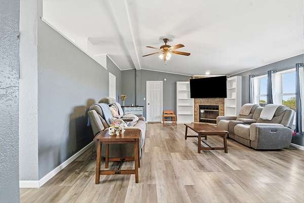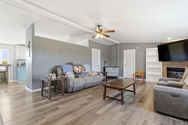 If you have been looking for a place where you can create your own vision, this is it. Tucked away in a peaceful area surrounded by large, quiet ranches, this property offers the ultimate retreat from the noise of everyday life. With no neighbors for miles, the only thing you'll hear is the wind in the trees and the local wildlife. The property features a comfortable 4-bedroom, 2.5-bath home that is ready for your personal touch. At its center, a warm, inviting fireplace provides the perfect spot to gather during cooler evenings. Outside, the expansive front porch is the highlight of the home-it's the perfect place to sit back, watch the deer, and take in the panoramic views that stretch for miles. At night, you'll enjoy a clear, dark sky filled with more stars than you thought possible. This acreage is set up for those who love the outdoors. With a large garage and workshop space, there is plenty of room for your tools, projects, or recreational equipment. You'll also find a pre-existing chicken coop, making it easy to jump right into a hobby farm or homesteading lifestyle. Original home located on the land awaiting a new purpose. Bring your vision and make this retreat your own.