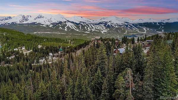 With southwest exposure, this lot is bathed in natural light, providing stunning, uninterrupted mountain views. The mature trees surrounding the property ensure ample privacy. This prime location boasts breathtaking views of the surrounding mountains, including the Breckenridge Ski Area, Ten Mile Range, Quandary Peak, and Baldy Mountain.