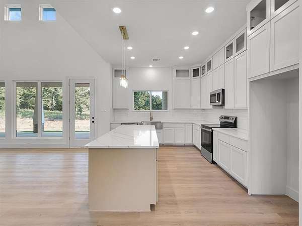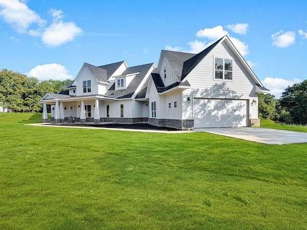 Hidden at the end of a tree-lined drive in Sunset, this newly built modern farmhouse pairs magazine-worthy style with the wide-open freedom of roughly five private acres! From its board-and-batten facade and deep front porch to the sprawling yard and serene, oak-studded surroundings, every angle reveals this home's commanding presence. Inside, a two-story great room boasts numerous windows, abundant natural light and cozy fireplace. The luxury vinyl wide-plank flooring guides you to an entertainer's kitchen--complete with floor-to-ceiling shaker cabinetry, quartz-slab counters, stainless farmhouse sink, brass hardware, walk-in pantry, and a statement island finished in a warm wheat tone. The primary retreat is a spa-like sanctuary boasting marble-look tile, freestanding soaking tub, frameless shower, dual vanities, and large walk-in closet with a custom shelving system. Upstairs reveals a sun-filled loft landing and an expansive vaulted bonus room--perfect for a game room, play room, home office, or exercise area! With Lake Amon G. Carter minutes away and US-287 just down the road for an easy Fort Worth commute, this property delivers sophisticated design, resort-style outdoor living, and the elbow-room acreage you've been dreaming of--truly the best of modern farmhouse living! Schedule your showing today!