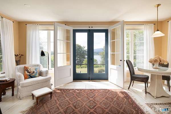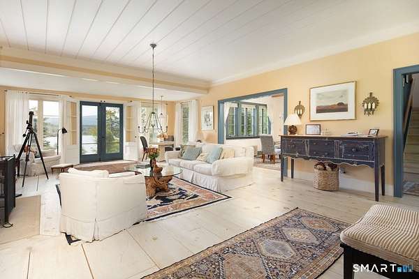 An exceptional opportunity that merges lakefront living with privacy and stunning mountain vistas! Nestled on just over 4.5 acres, this lakeside estate features a Main Home, a Guest Cottage, two garages-one of which includes a Finished Studio Space on the upper level-a Greenhouse, and an expansive lawn that descends to a private dock on Twin Lakes. The two-story, 3-Bedroom residence has been custom-crafted to enhance spacious living areas and large windows that showcase the breathtaking mountain and lake views throughout the home. A central Great Room opens to the lakeside lawn, making it perfect for gatherings throughout the year. Additionally, a Screened Porch provides another venue to fully enjoy the lakefront lifestyle. The Primary bedroom Suite is conveniently located on the Main level, while the other two are situated upstairs, accompanied by their own Sitting Room that offers views of the lake and central air on 2nd floor. A 2-Bedroom Guest Cottage is positioned at the entrance of the driveway, has a wood burning fireplace, heat pump system for heat and AC, and it is close to the lake and private dock-ideal for hosting guests or serving as a delightful entertaining space for summer outings on the lake. The expansive lawn and generous lakefront lot also accommodate a Greenhouse and two distinct garage structures, one of which features a 756 sq. ft. Studio and Bathroom above the 2-bay garage-providing a variety of potential uses.