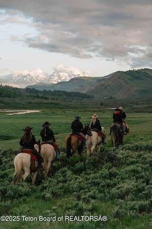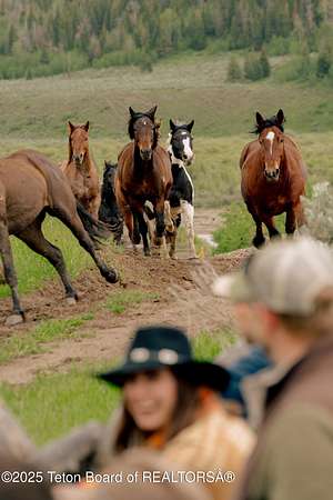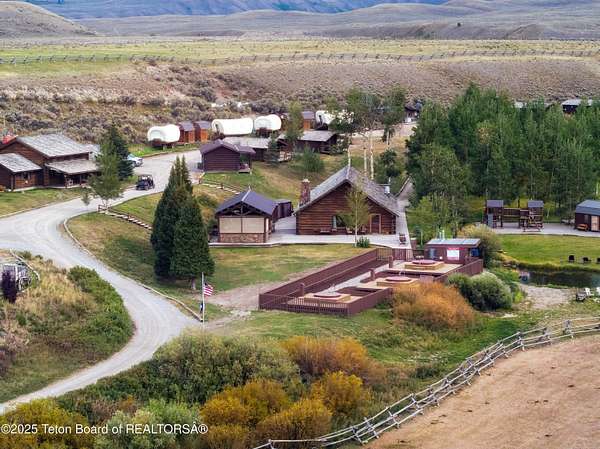Historic 155 acre Goosewing Ranch in the Gros Ventre Wilderness. 11 cabins with modern comforts overlook the river. The lodge is home to gatherings & meals with commercial kitchen & dining for guest F&B operation. Equipped for equestrian & outdoor adventure. Miles of trails for horseback, ATV, or hiking to world class fishing. Infrastructure, amenities & equipment make it a turnkey business. Legacy as guest & dude ranch, established reputation, brand presence & customer base provide consistent income. Possibilities for conservation, family compound, or larger operation. Owners maintained & improved property, preserving authenticity, enhancing value & appeal. Adjoining Gunsight ranch increases guest use max from 35 to 75 per day. Additional increase to FAR for development. Permits included Goosewing Ranch - A Timeless Western Retreat in the Heart of Wyoming's Wilderness. Welcome to Goosewing Ranch, a rare property in the heart of the Gros Ventre River Valley of Jackson Hole, Wyoming. Surrounded by towering peaks, rolling meadows, and untouched wilderness, this turnkey dude ranch operation offers a blend of rustic elegance, western heritage, and modern comfort. The ranch boasts autonomy alongside stunning Teton scenery while operating on a sustainable off-grid infrastructure. Whether you're seeking a private western getaway, a working guest ranch business, or a one-of-a-kind investment in the American West, Goosewing Ranch is a legacy property that provides a myriad of opportunity. Set on over 155 acres of deeded land, including Gros Ventre River frontage, Goosewing Ranch provides complete seclusion while remaining accessible from the Town of Jackson and Grand Teton National Park. Just 35 miles from Jackson, the beautiful drive to the ranch follows the curves of the Gros Ventre River past Slide Lake and climbs through red hills, forests and open valleys. With more than 500 species of wildlife in the Greater Yellowstone Ecosystem, the area is abundant with animals including frequent sightings of elk, moose, deer, big horn sheep, antelope, bald eagles and many more. At the heart of Goosewing Ranch is a welcoming lodge that serves as the focal point for gatherings, meals, and relaxation. Constructed in classic log cabin style, the lodge features vaulted ceilings, a massive stone fireplace, handcrafted woodwork, and panoramic views. The commercial-grade kitchen and dining area are designed to accommodate both intimate dinners and large-scale entertaining, ideal for family reunions, corporate retreats, or guest stays. The ranch includes 11 guest cabins, each thoughtfully designed to accommodate a range of guest needs. These well-appointed cabins offer rustic-chic interiors including en-suite bathrooms, modern comforts and amenities, heating stoves and porches that overlook the river valley. Whether hosting guests for a vacation or accommodating family and friends, the lodging experience is as authentic as it is comfortable. Goosewing Ranch is fully equipped for both equestrian and outdoor adventure. The expansive horse facilities include a large barn, tack room, corrals and ample pastureland. Miles of private and public trails await exploration on horseback, by ATV, or on foot, offering endless opportunities for fly-fishing, hiking, wildlife viewing, and photography. The Gros Ventre River, known for its pristine waters and native cutthroat trout, is accessed directly from the property and offers excellent fishing and kayaking. Included in the ranch are a host of additional structures, amenities and equipment that make it ready for turnkey operation or immediate enjoyment. These include a guest reception building, recreation center, ranch manager home, newly built decks with 3 commercial grade hot tubs, a shooting range, staff housing, laundry facility, storage barn, Conestoga wagons, ranch maintenance equipment, fleet of UTVs and vehicles, property FF&E and fully equipped water, sewage, electric and gas operated infrastructure. Inter