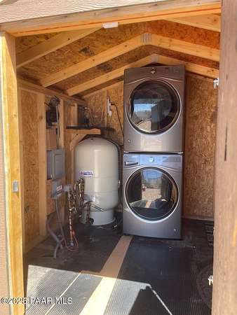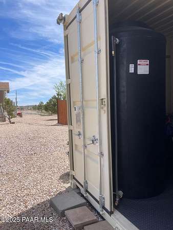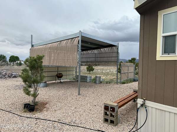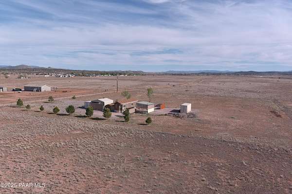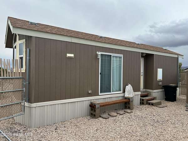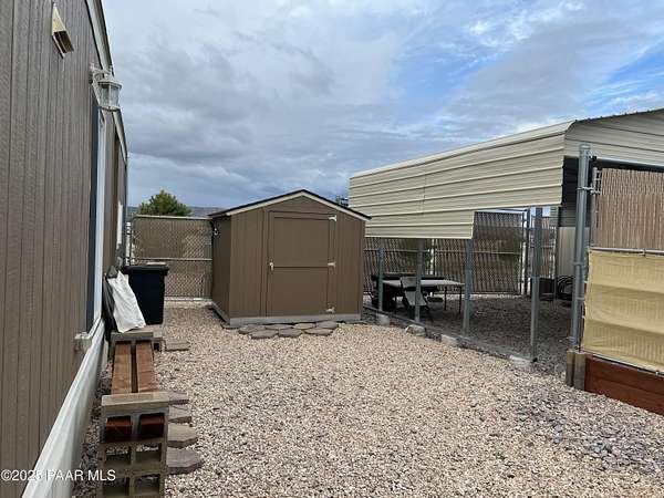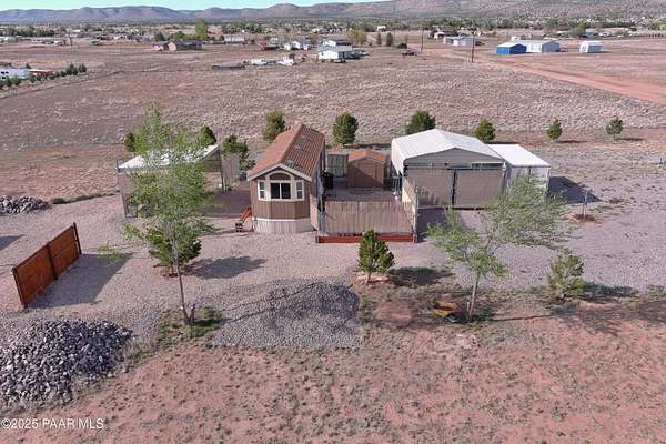 *This is a beautiful Tiny Home with room to build, HOWEVER, it must be CASH or a CHATTEL LOAN - traditional financing will not work* Enjoy gorgeous mountain views, privacy, and mature trees with irrigation on this fully fenced and gated 2.5-acre property. Live in the guest house/tiny home or build your new home and use it as an ADU. 30-year architectural shingle roof, desirable kitchen layout, upgraded Roxul insulation for lower electric bills. Too many extras to list! Many land development options! Bring horses, RVs, ATVs, motorcycles, and grow a garden! Existing home has Certificate of Affixation, and all structures are permitted by Yavapai County. Private well approximate 30 gpm. External 550-gallon emergency water tank conveys (needs connection). Septic approved for an additional house with up to 4 bedrooms. Excellent condition sealed metal shops, covered patio, courtyard, and 2-car carport.