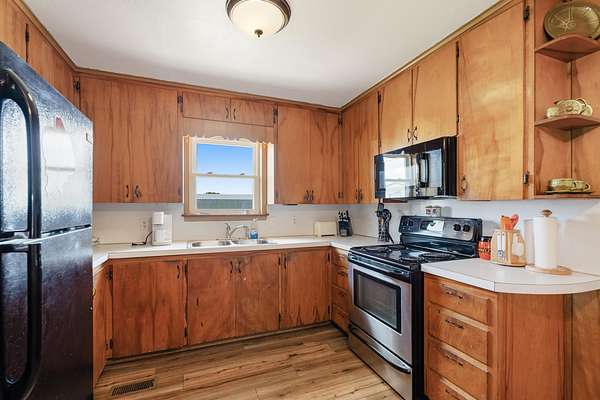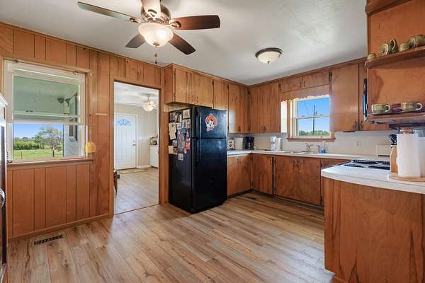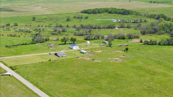 Attention livestock owners! Welcome to this 240+/- acre property that is fully fenced and turnkey-ready for livestock operations. Features include a creek that runs through the property, a full set of working corrals, horse stable, loafing shed, and overhead grain bins. A 30'x40' shop with 10' overhead doors and a concrete floor offers ample space for equipment and storage. The cute farmhouse has been recently updated with a new roof, flooring, fresh interior paint, and windows. Enjoy the quiet country setting, abundant wildlife, and beautiful sunsets from your own piece of rural paradise. An ideal setup for ranchers or anyone seeking productive land with natural charm.