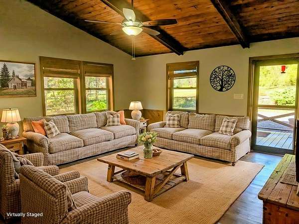 Discover the perfect blend of comfort, charm, and opportunity on this beautiful 4.11 flat acres with a flowing creek right in your backyard, mountain views from your front porch and a ranch! Half open pasture and half wooded, this property offers the ideal mix of usable land and natural beauty. Step outside to your back porch and enjoy the peaceful sound of water flowing under your very own private bridge -- it's the perfect North Georgia retreat. Inside, this 2 bedroom, 2 bath home features a newly remodeled kitchen with modern appliances, open living spaces, and a cozy gas log fireplace for those cool mountain evenings. Both bedrooms are spacious and include their own bathrooms, providing comfort and privacy for family or guests. With limited restrictions and short-term rentals allowed, the possibilities here are endless -- make it your full-time home, vacation getaway, or income-producing property. Plenty of level land for a garden, barn, or future expansion, all in a peaceful mountain setting close to town conveniences. Properties like this -- flat, usable acreage with water frontage -- don't come along often. Come see the potential for yourself before it is gone!
