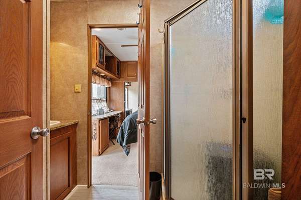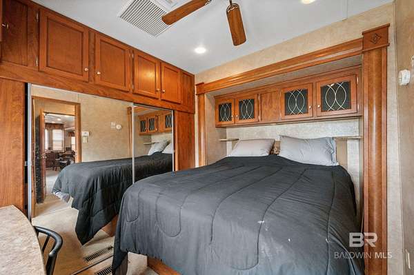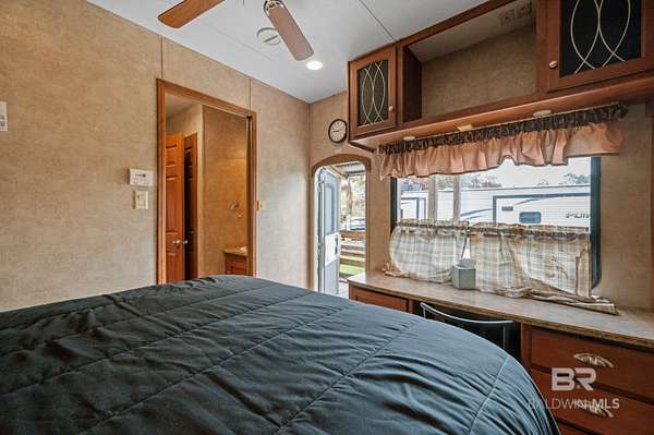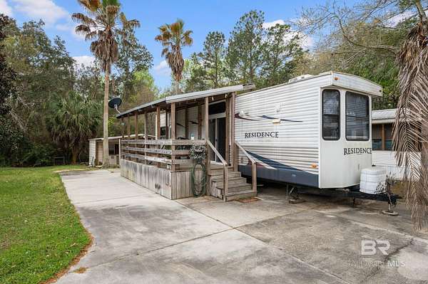 Charming RV lot located in the gated waterfront community of Plantation Harbour in Elberta. This property includes the RV lot, a 2011 RV being sold as-is, and a storage building featuring a full bathroom, offering added convenience and flexibility for extended stays. Enjoy relaxing on the deck overlooking scenic Miflin Creek, where dolphins are often seen swimming by. Plantation Harbour offers a variety of community amenities including a large clubhouse, swimming pool, walking trails, and a boat launch, providing easy access to the water. The community is golf cart friendly, making it easy to cruise through the neighborhood and enjoy the coastal surroundings. Rentals are allowed, offering additional flexibility for owners. Whether you’re looking for a weekend retreat, seasonal getaway, or an investment opportunity, this property offers a great chance to enjoy the waterfront lifestyle in this unique RV community along Miflin Creek. Buyer to verify all information during due diligence.