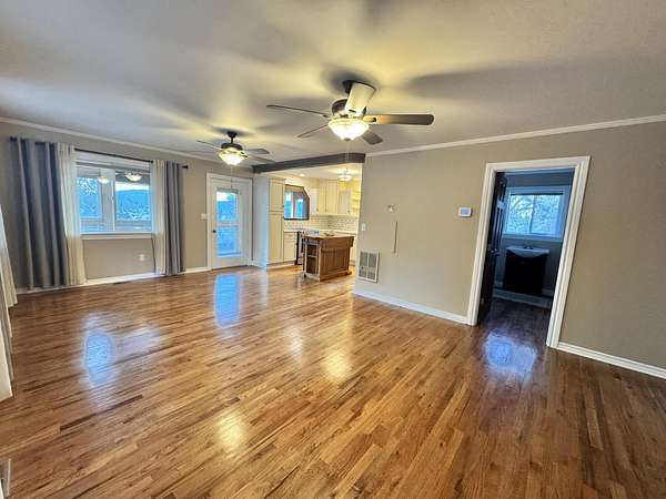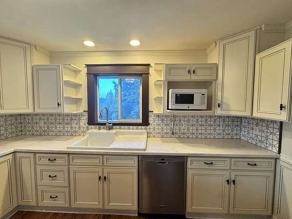Motivated Seller! Discover this unique 2-bedroom, 1-bath main home (1,080 sq. ft.) paired with a 640 sq. ft. detached living space featuring its own kitchen and 2 full baths. Perfect for extended family, guests, or potential rental income opportunities. The main home offers recent kitchen upgrades and a cozy enclosed sun room with forced air heating and cooling. A detached garage includes sliding shelving units and a built-in compressor. RV parking with hookups ready to be installed. Just a 45-minute drive from Klamath Falls. Don't miss this exceptional opportunity--schedule your private tour today!