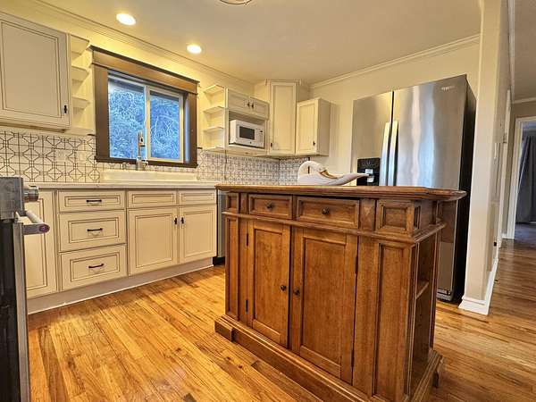 - Ceiling Fan(s), Kitchen Island, Shower/Tub Combo