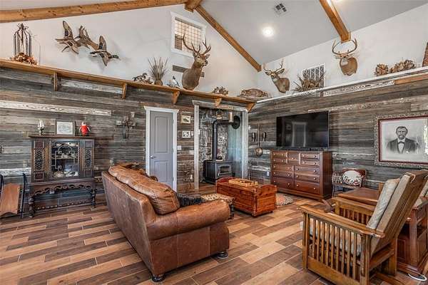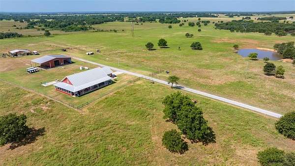Welcome to paradise on this gorgeous 230 acres ranch with a picturesque high elevation view of the Arbuckle Mountains. This multi-functional fenced property (10 strands of gradual 4-point barbed wire) has lush pastures, thick trees (including pecan), covered cattle pens, a huge insulated shop with concrete floors, electricity, water, RV parking along with ample covered equipment parking. Five ponds supply plenty of water for livestock and wildlife. Hunting and fishing opportunities are abundant on this wildlife haven! The many unique features of this stunning 3,000 sf home will captivate all including a mother in law suite. The full-length porch can accommodate many guests for grilling and enjoying the gorgeous sunrise and sunset views. Cozy up on the screened in porch area and avoid bugs while enjoying the tranquility of the peaceful outdoors and stunning views. Built in 2020 with 2x6 walls, spray foam insulation and Anderson windows help ensure energy efficiency. As you enter the front door, amazing aesthetics of this home with the vaulted beamed ceilings welcome you into an open living area and state of the art kitchen. Serve up plenty on family weekends with CookRite commercial range and griddle. A cute playroom loft area (also known as the kid pen) is accessible by hidden stairs in the kitchen. So many special touches in this home, including office spaces, al large walk in pantry that is also a safe room and an outdoor shower! Call myself or your favorite realtor and take a tour of this rare find and see how it can accommodate your family's every need!