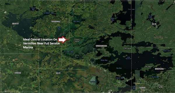 Exceptional 4.72 acre parcel set back off paved Oak Narrows Rd, Less Than A Mile To Lake Vermilion At Full Service Timbuktu Marina, Launch & Convenience Store & Only 12 Mi to Town! Ideal central location on the lake, close to snowmobile, ATV, hiking, biking trails, golf & dining. Parcel is level high ground except a small portion on the far west end. Electricity nearby. Storage shed. Clearing used to have log cabin that was moved off site. Enjoy lake living without lakeshore taxes, privacy, seclusion & wildlife.