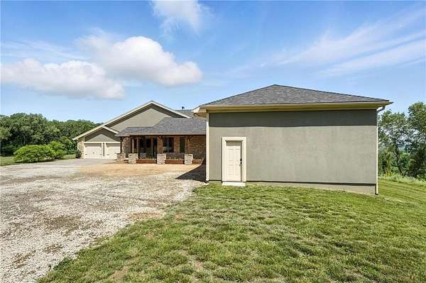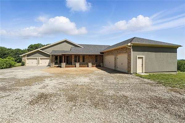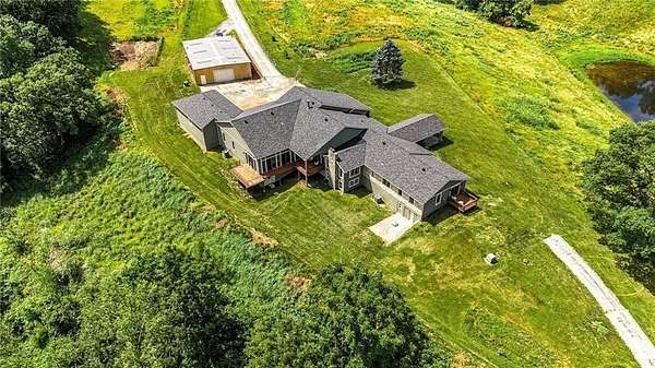 Situated on 50 acres in Leavenworth County and the Lansing School District, this property includes a separate guest home, pond, a 50-foot Butler building with electricity, water, and a bathroom, and land teeming with wildlife including deer, turkey, and bald eagles. The expansive deck offers sweeping views over the Missouri River valley, creating the perfect backdrop for relaxing or hosting. Updates throughout include a 2021 remodel, new roof (2024), HVAC (2024), tankless water heater (2022), fresh exterior paint, and more. This home offers timeless craftsmanship, thoughtful upgrades, and unbeatable space inside and out.