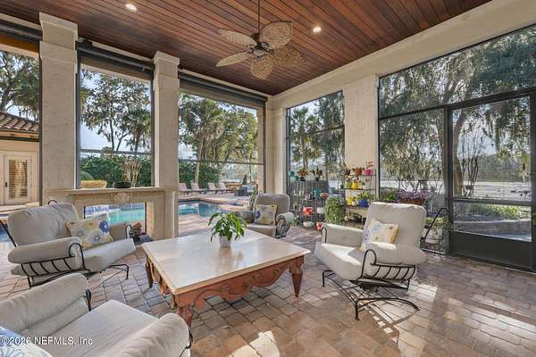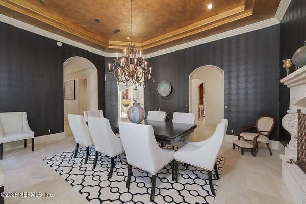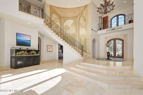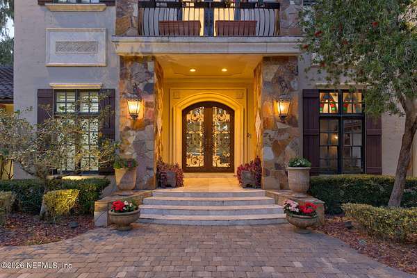Tucked under a majestic canopy of mature trees in the exclusive Intracoastal enclave of Harbour Island, this extraordinary estate has more than 11,000 sq.ft. of timeless Mediterranean elegance. A grand circular drive welcomes you to a spectacular residence designed for luxurious living & unforgettable entertaining. The main home features 4 spacious bedrooms, 4 full baths, and 3 powder rooms, complemented by formal and informal dining spaces, soaring ceilings, and exquisite architectural craftsmanship throughout. The private primary retreat offers a serene sitting room with fireplace, a spa-inspired bath w/ sauna, dual water closets, and expansive his-and-hers custom closets. Entertainment is effortless with a dramatic theatre room featuring a bar, 4 TV's + projector w/ cinema screen, & billiards/shuffleboard areas. Highlights include a temperature-controlled wine cellar, multiple bar areas, top-of-the-line appliances, several covered porches & balconies. Includes a 50ft. boat slip!