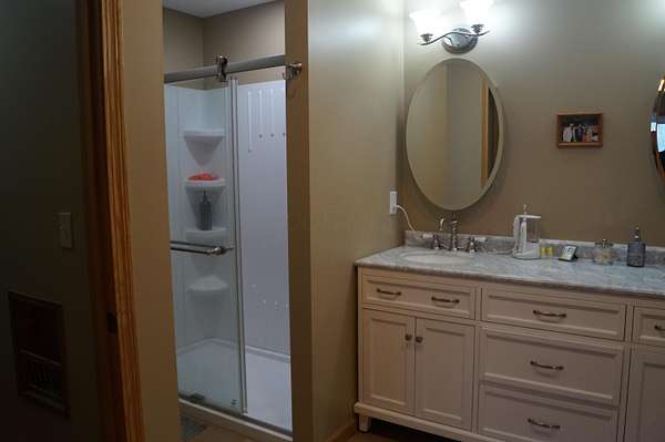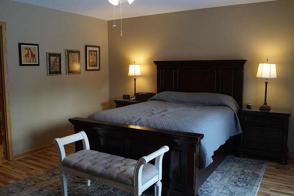 Est $2,579/moBeautiful ranch home on 3 acres with freshly painted interior and vinyl plank flooring. Features include a vaulted great room with skylight and custom built-ins, large eat-in kitchen with appliances and ample cabinetry, formal dining room with crown molding. Owner's suite offers renovated bath with pocket door, double vanity, and cedar-lined walk-in closet. Two additional bedrooms with double closets and a hall bath. Main level laundry with half bath. Walk-out basement with workshop and garage door access. Freshly painted 2-car attached side-load garage. Whole house generator. Spacious, private setting with room to enjoy.